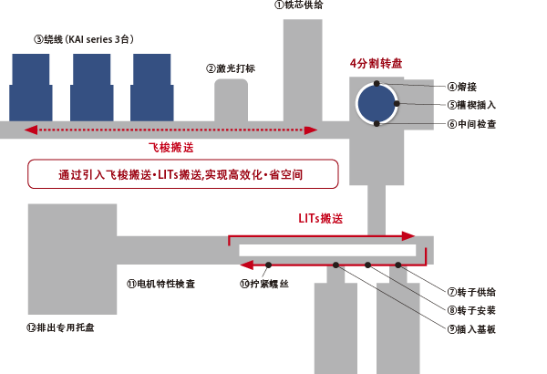 - 采用飞梭搬送 · LITs 搬送系统 → 通过日特独自的搬运系统,实现空间节省